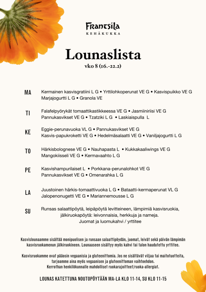 Halutessasi voit varata pöydän myös sähköpostilla osoitteesta info@frantsilankehakukka.fi, mutta ei sosiaalisen median viesteillä